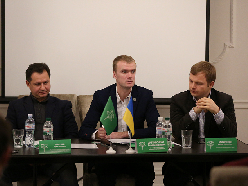 На конференцію до тернополян приїхали члени політради партії «УКРОП» депутат Київської обласної ради Денис Борисенко та голова органу, народний депутат Тарас Батенко.