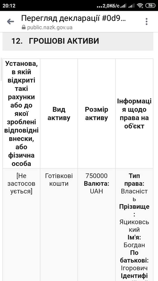 Про це йдеться у його декларації.