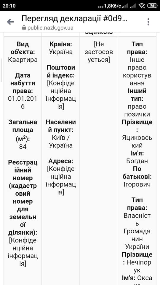 І має у власності квартиру у Києві, площею 84 метри квадратних.