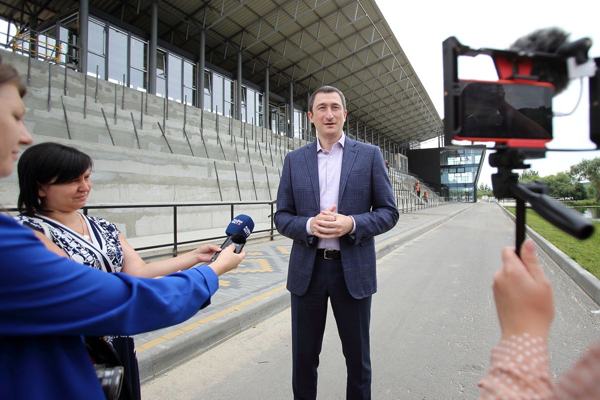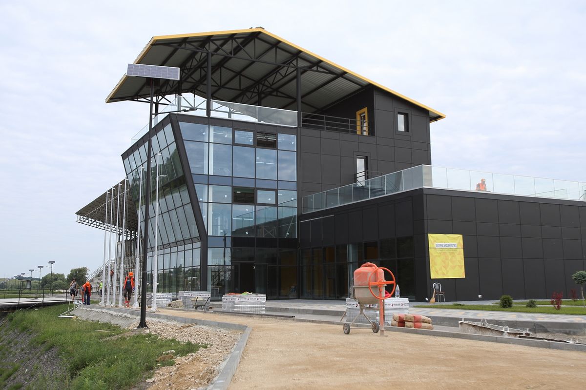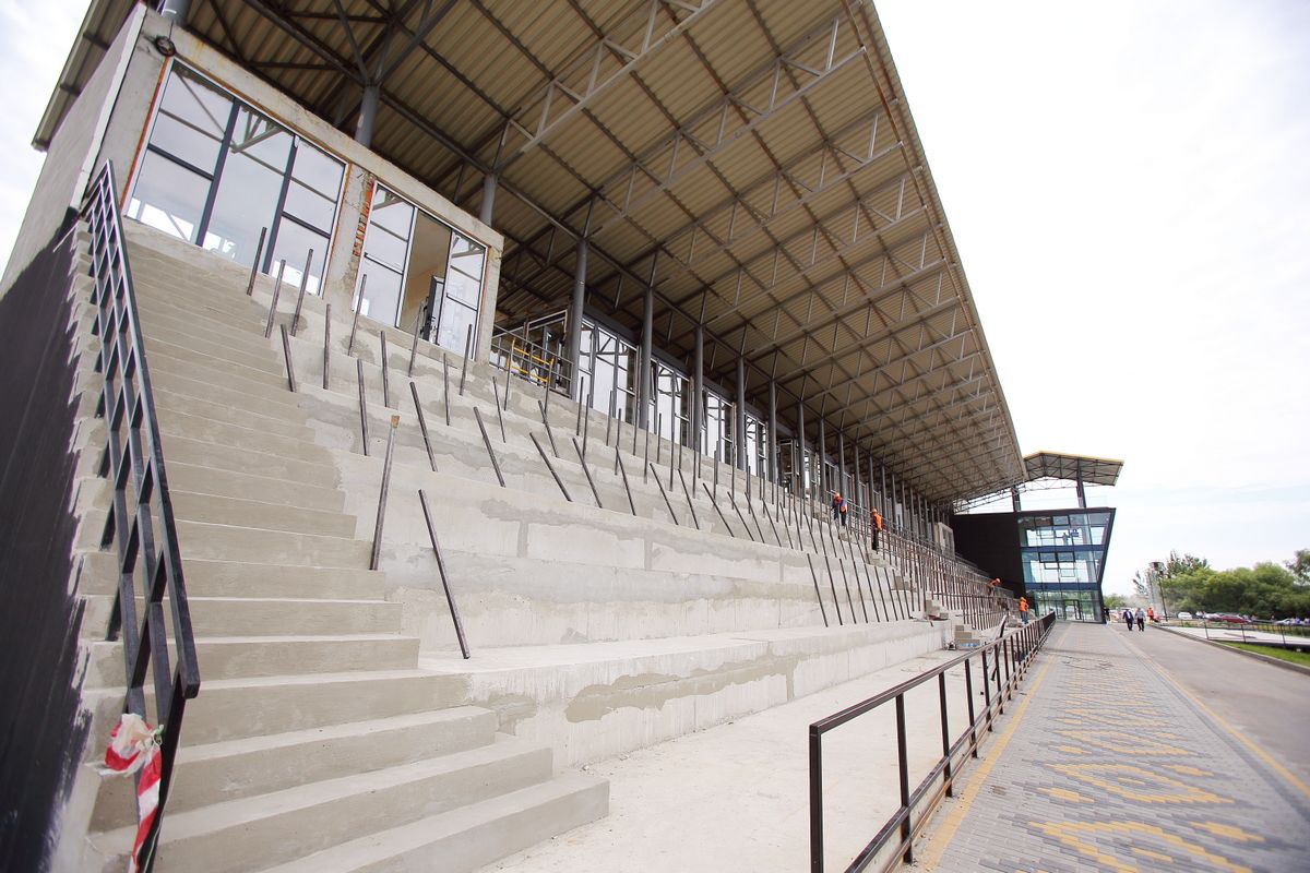 Зараз триває благоустрій території – парковки, зелені зони, дорога, йде будівництво та монтаж елінгів. На стадії завершення - трибуни, які розраховані на 1000 місць.