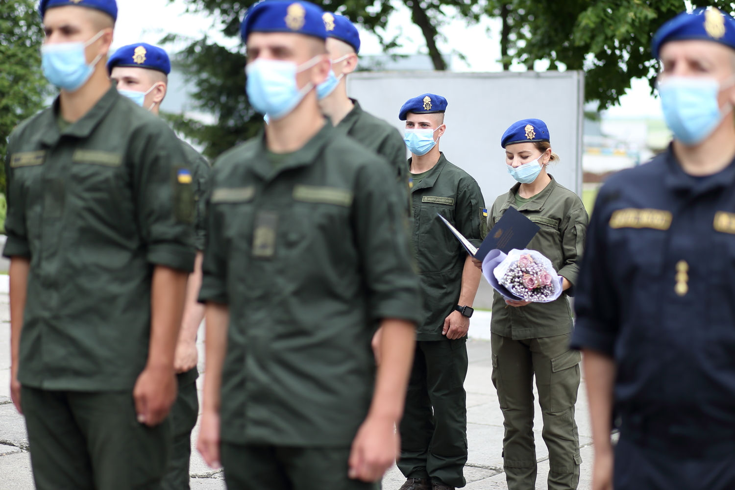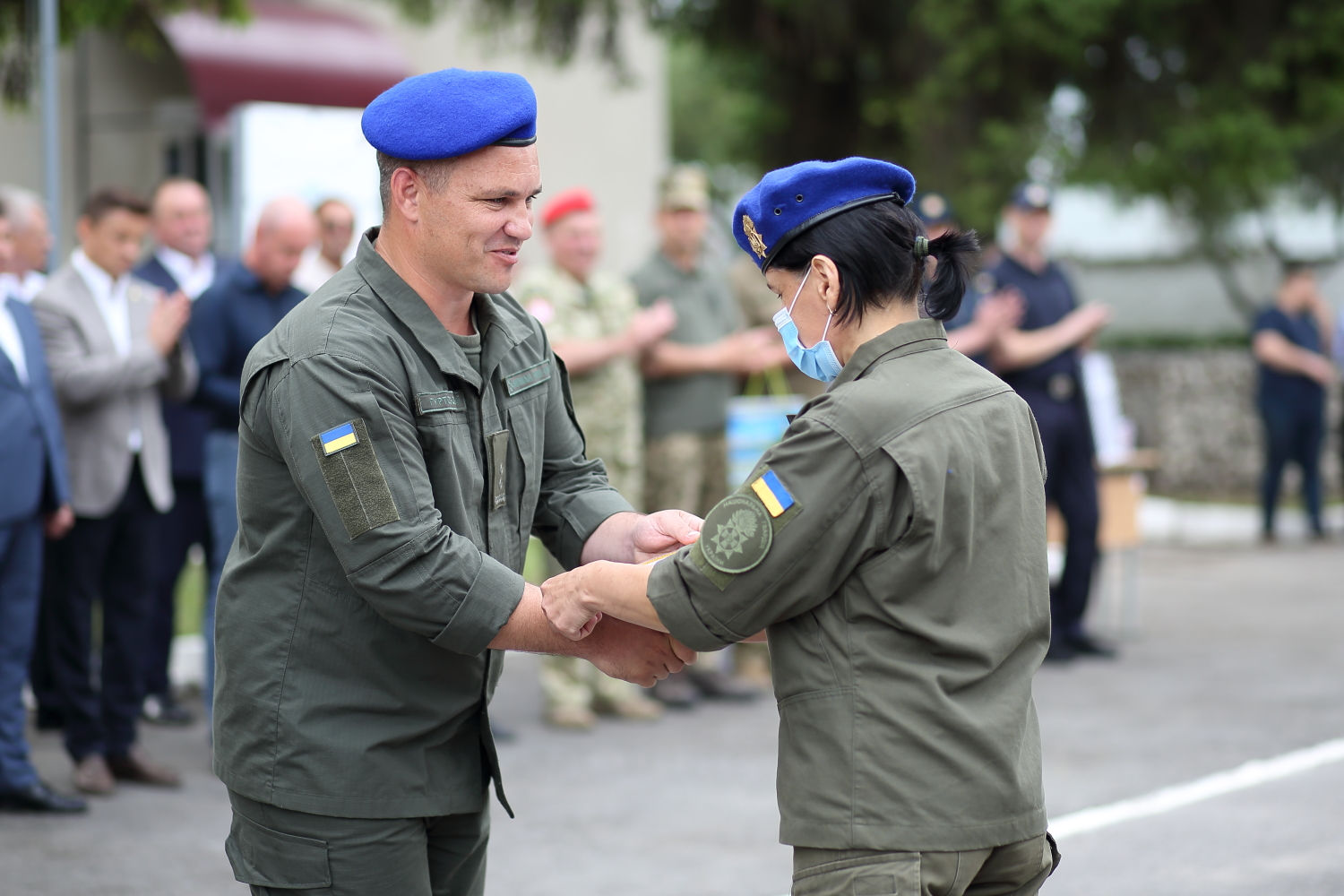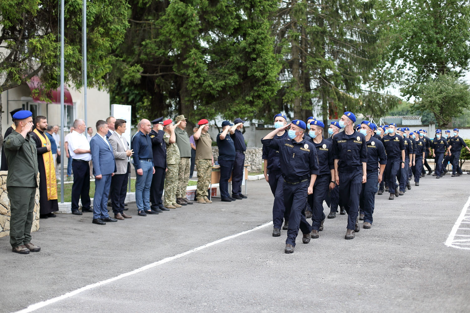 Спершу військових привітали священники та керівництво, невдовзі до привітань приєдналися місцеві чиновники.