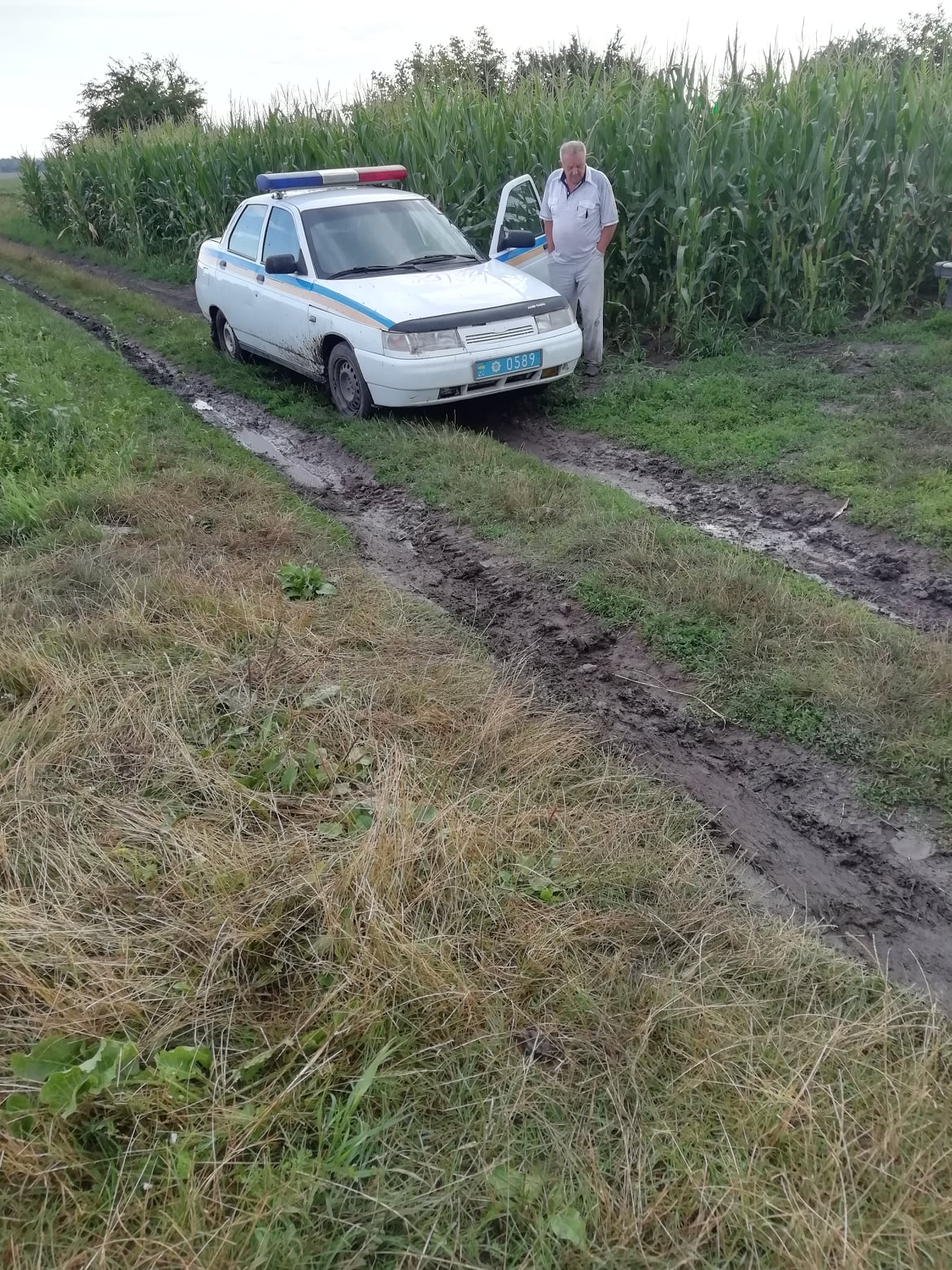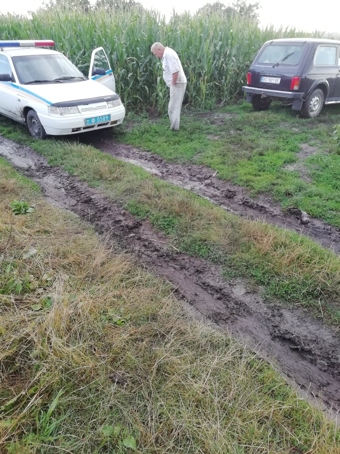 У дописі також прикріплені фотографії з місця інциденту, де видно Михайла Вербіцького, автомобіль «Ниву» і авто поліцейських.