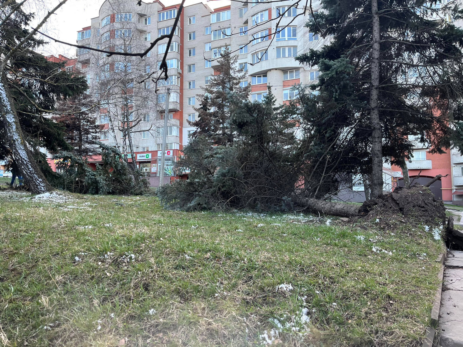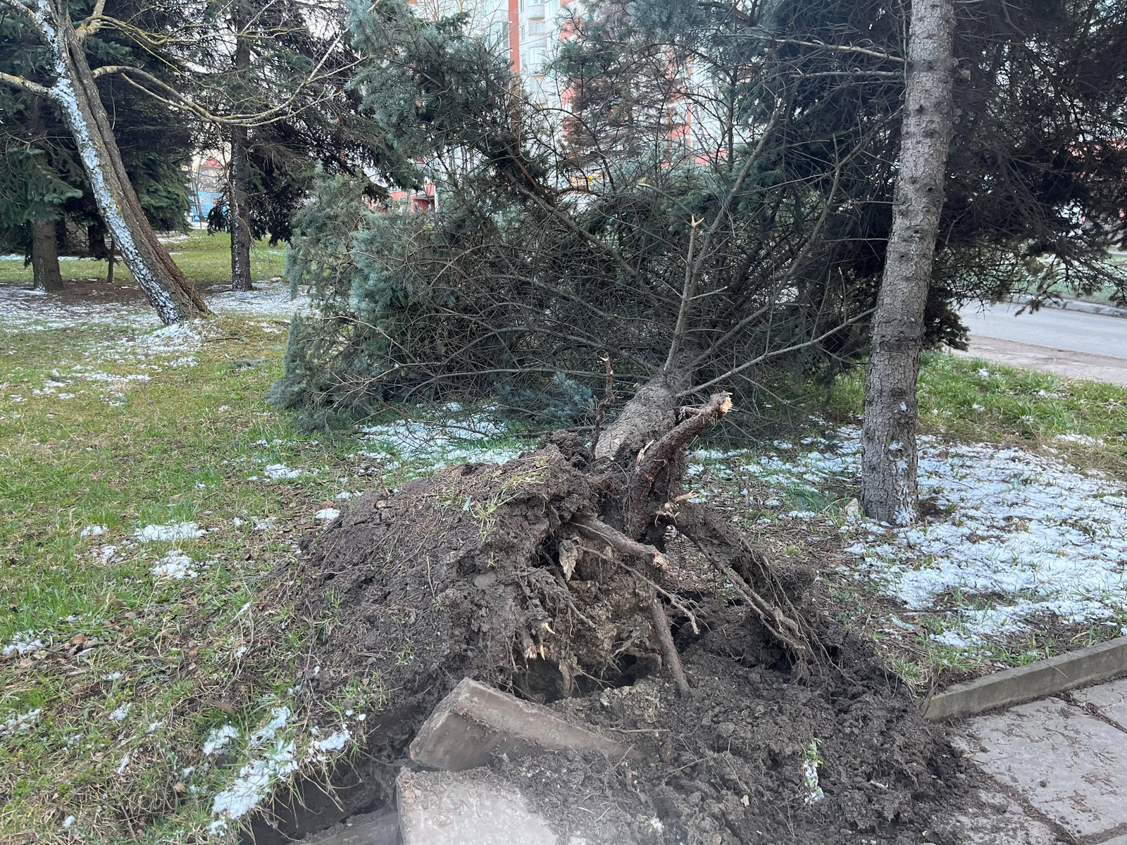 Станом на 19.45 дерево лежить на зеленій зоні.