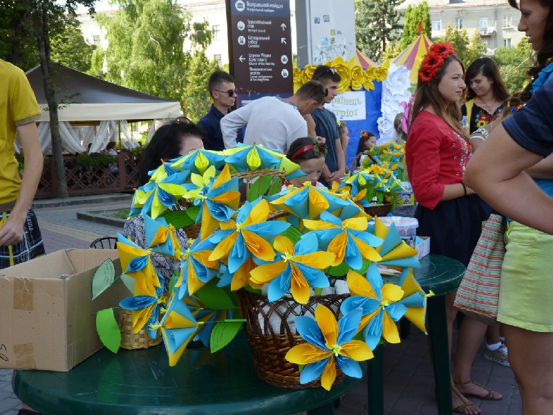 Також волонтери продавали паперові квіти, які напередодні виготовили школярі. «Квітка миру та надії» продавали у рамках флеш-мобу «Героям слава!». Виручені кошти, за виготовлені квіти дитячими руками, буде передано Логістичному центру на потреби бійцям АТО.